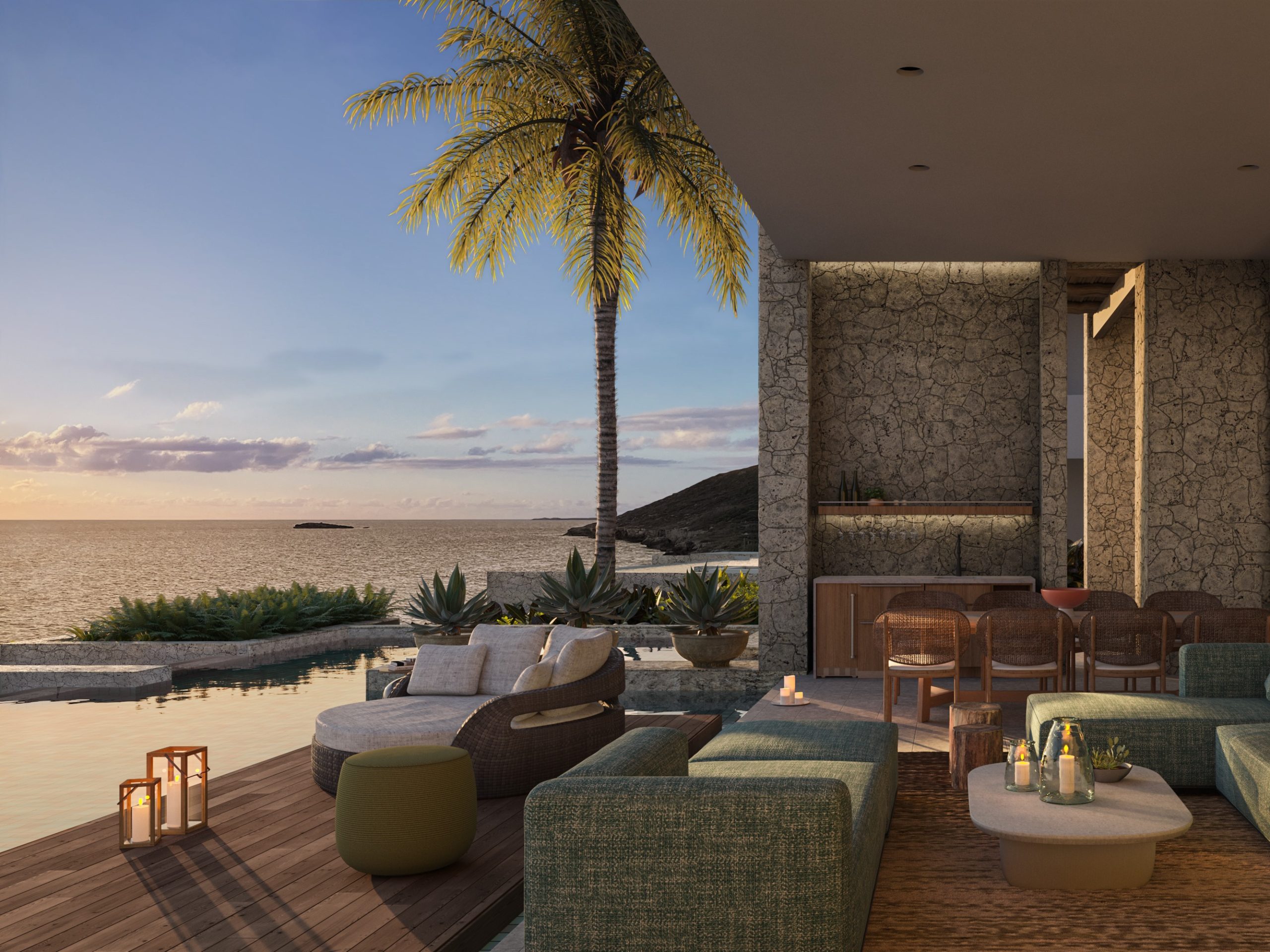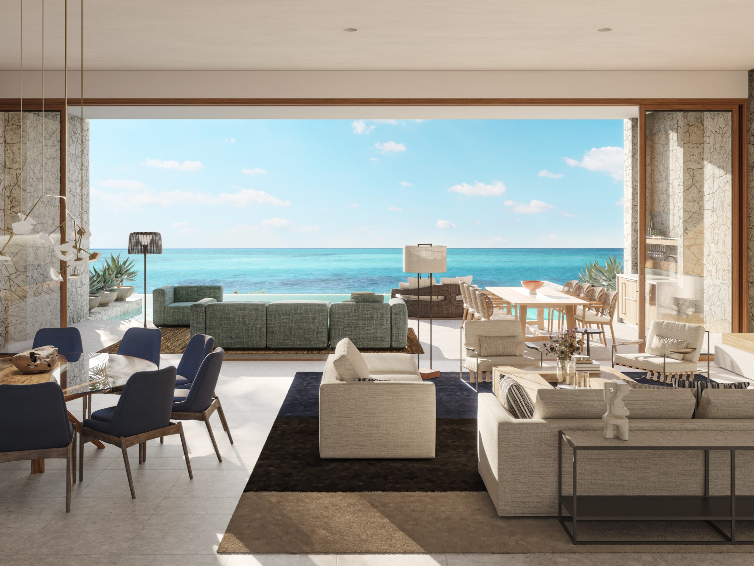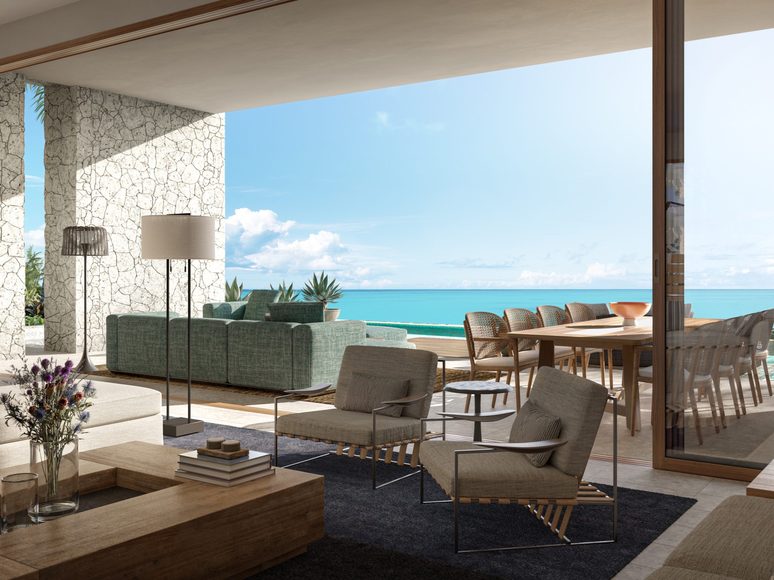 These elegant six-bedroom residences offer a luxurious experience. The main house features five oceanfront en suite bedrooms, including a spectacular second-floor master suite. An expansive great room seamlessly connects to a formal outdoor terrace and handcrafted infinity pool, providing endless ocean views above the Caicos Banks. The courtyard boasts a plunge pool and spa, along with an outdoor kitchen, family/flex room, and a one-bedroom guest house. Each residence is uniquely designed with a built-in overlook at the iron shore edge and a grotto beach, promising the perfect blend of luxury indoor and outdoor living.